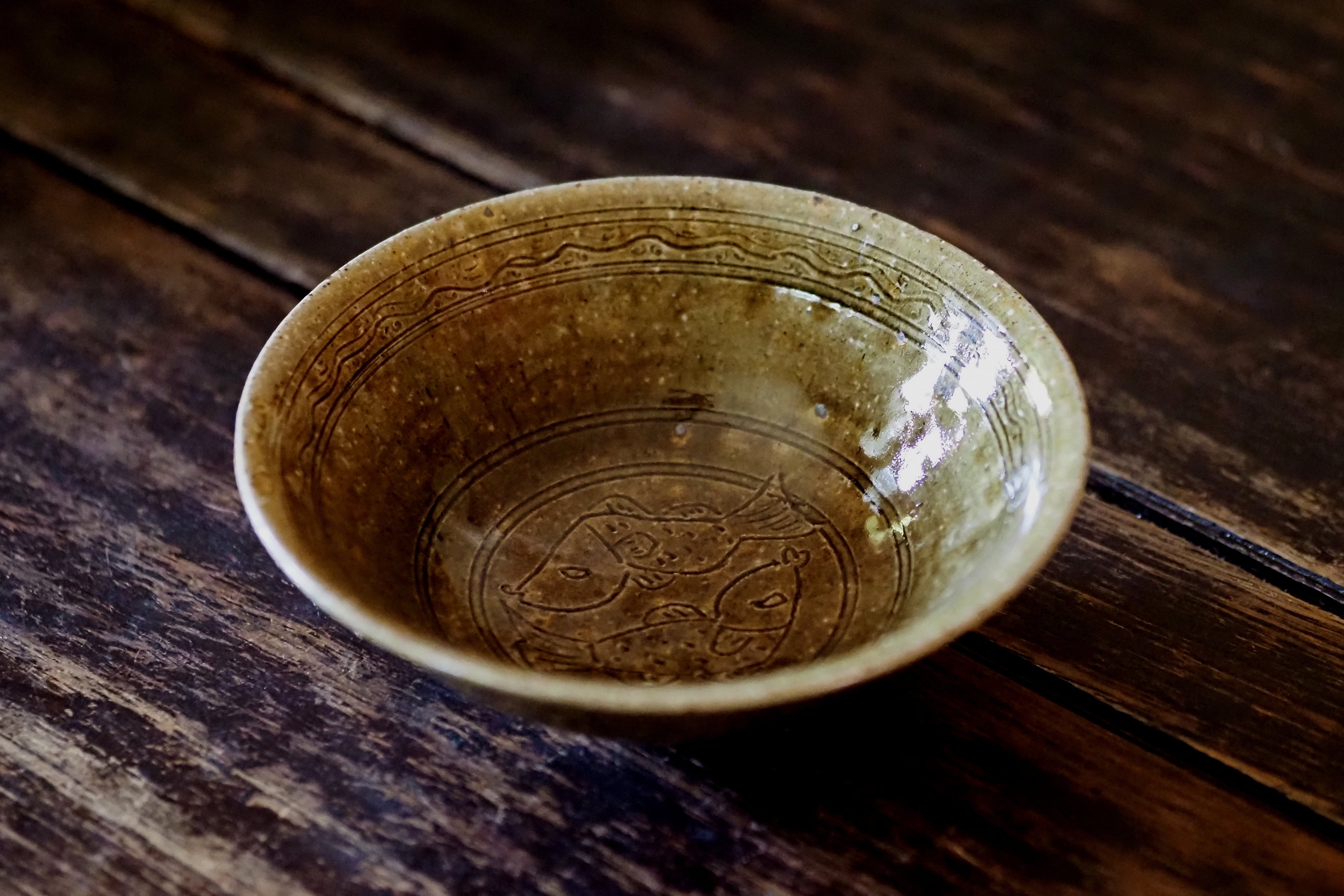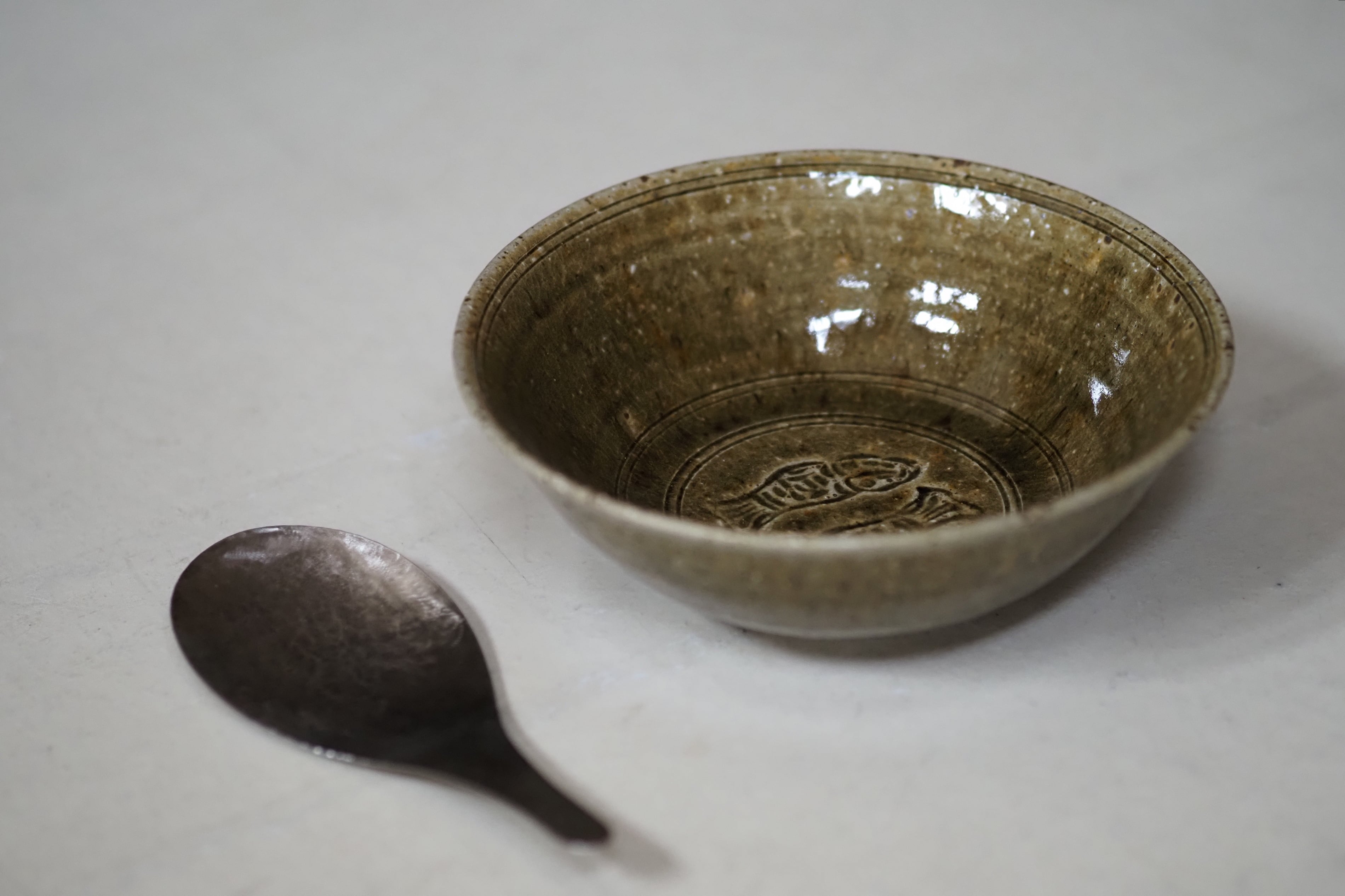 余宮隆 49-B.灰釉双魚文縁付6寸鉢