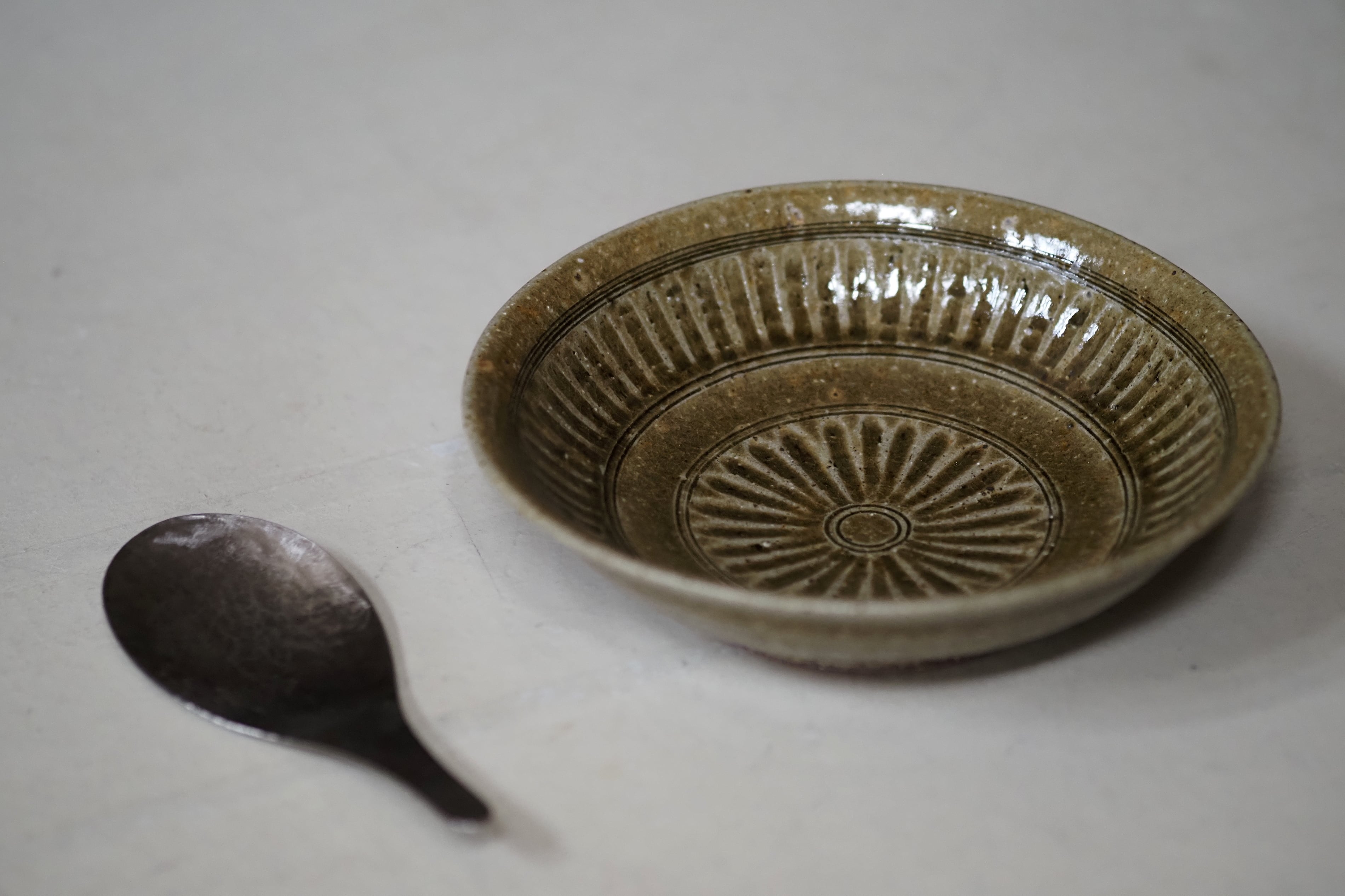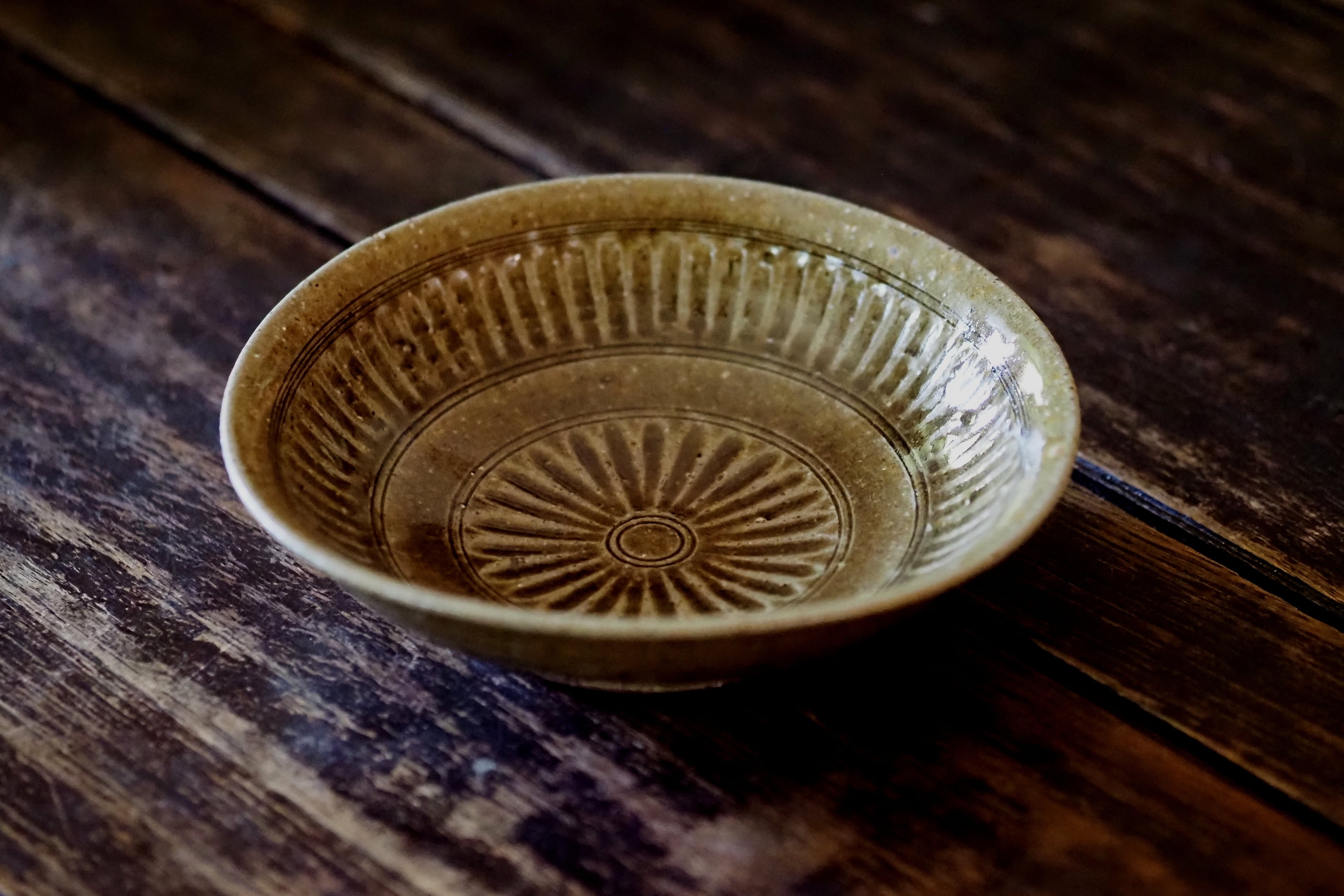 余宮隆 50.灰釉菊文7寸浅鉢
