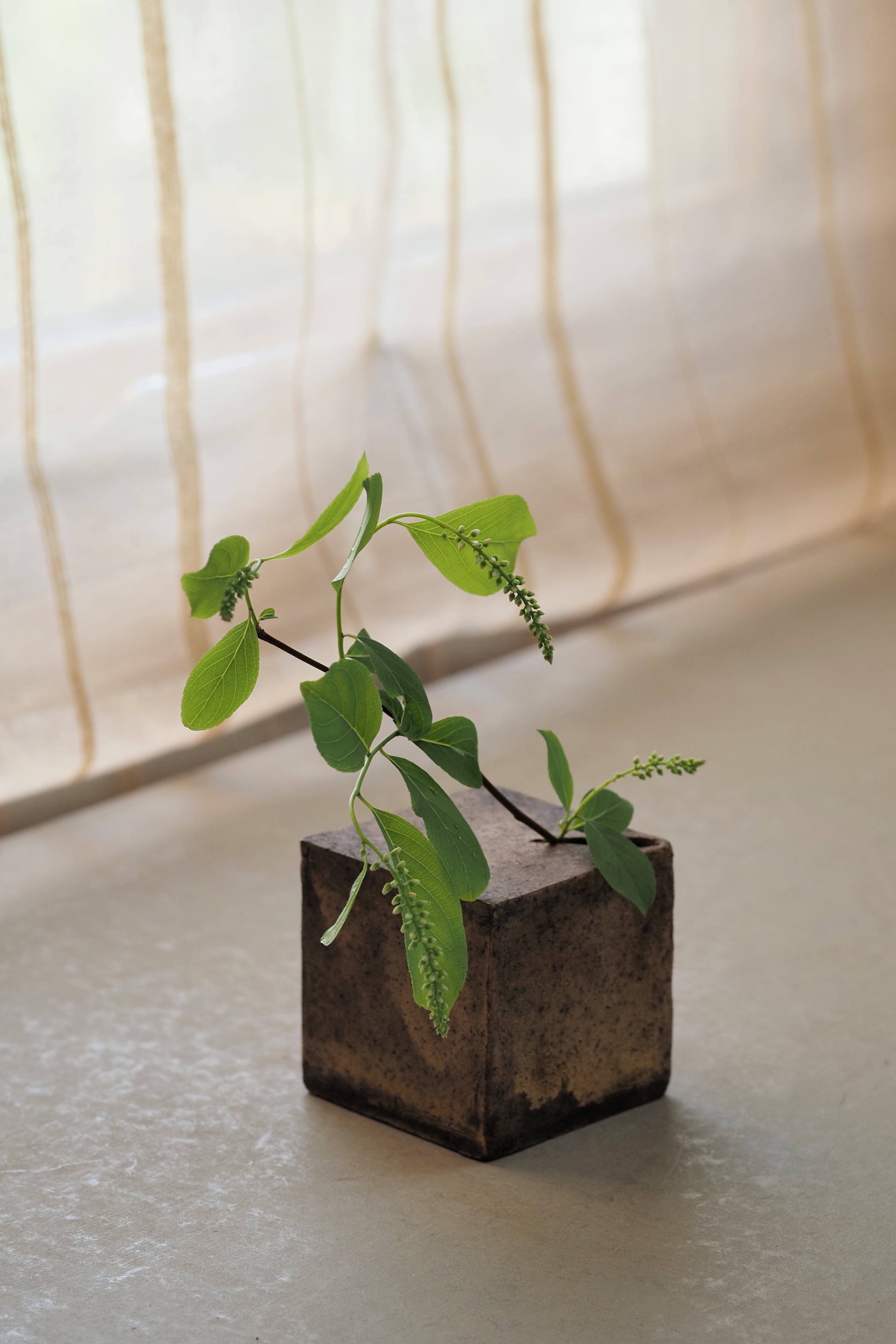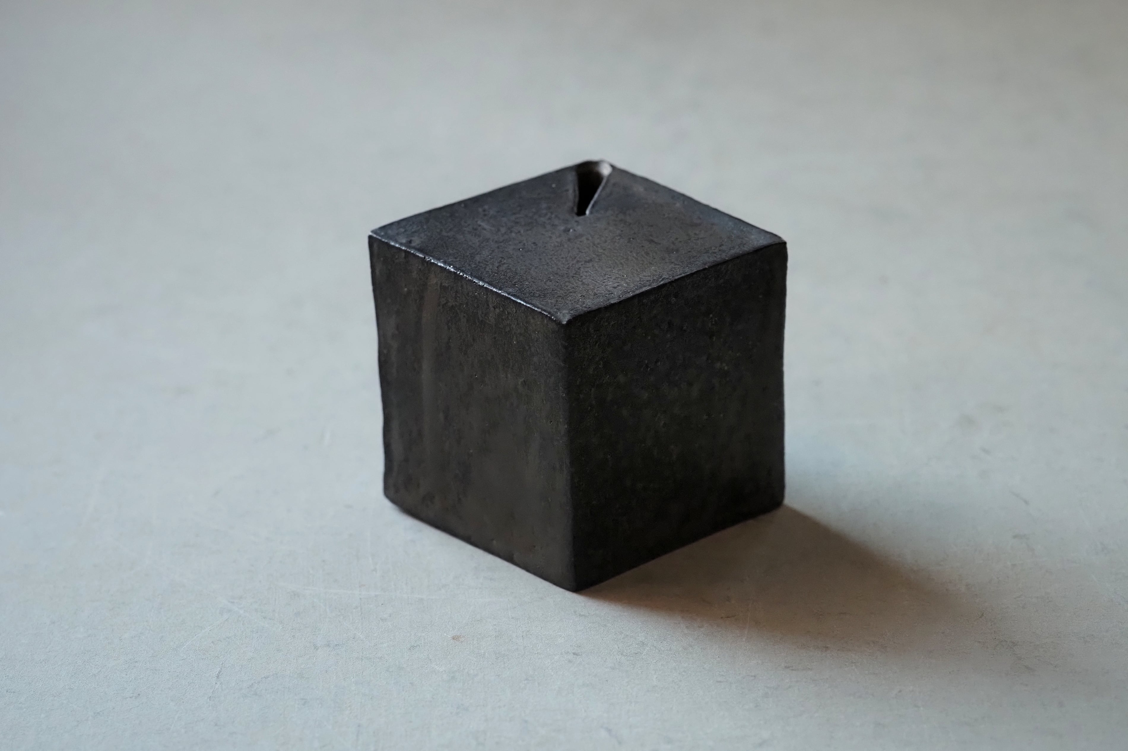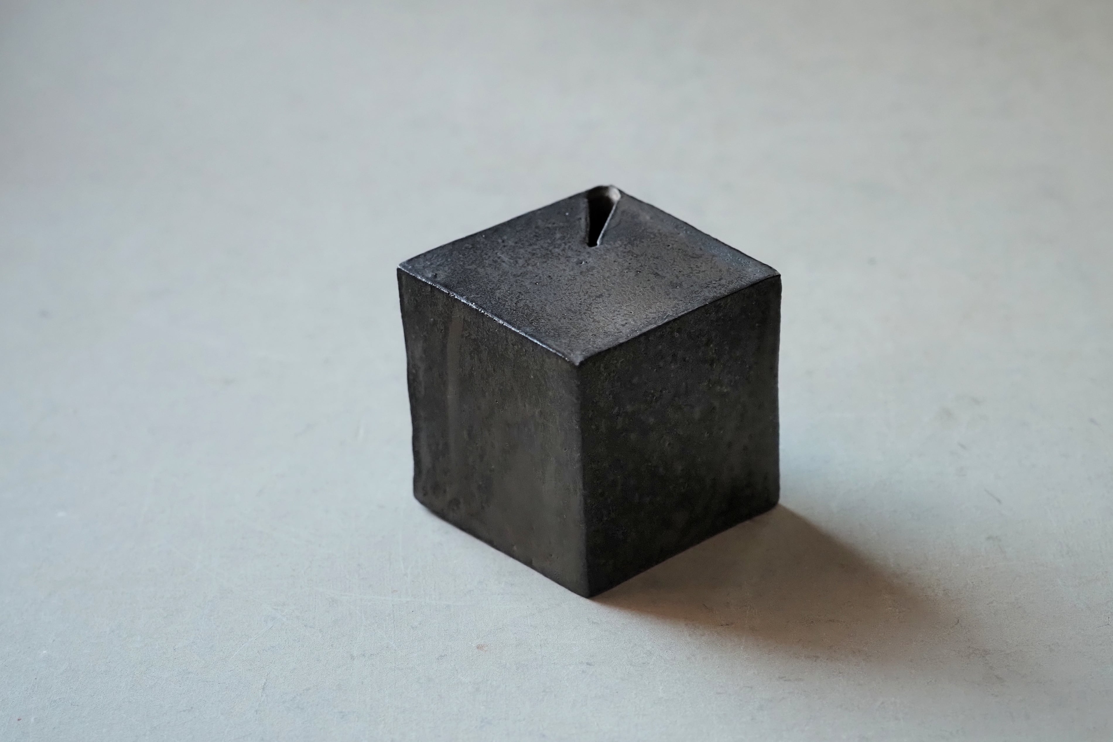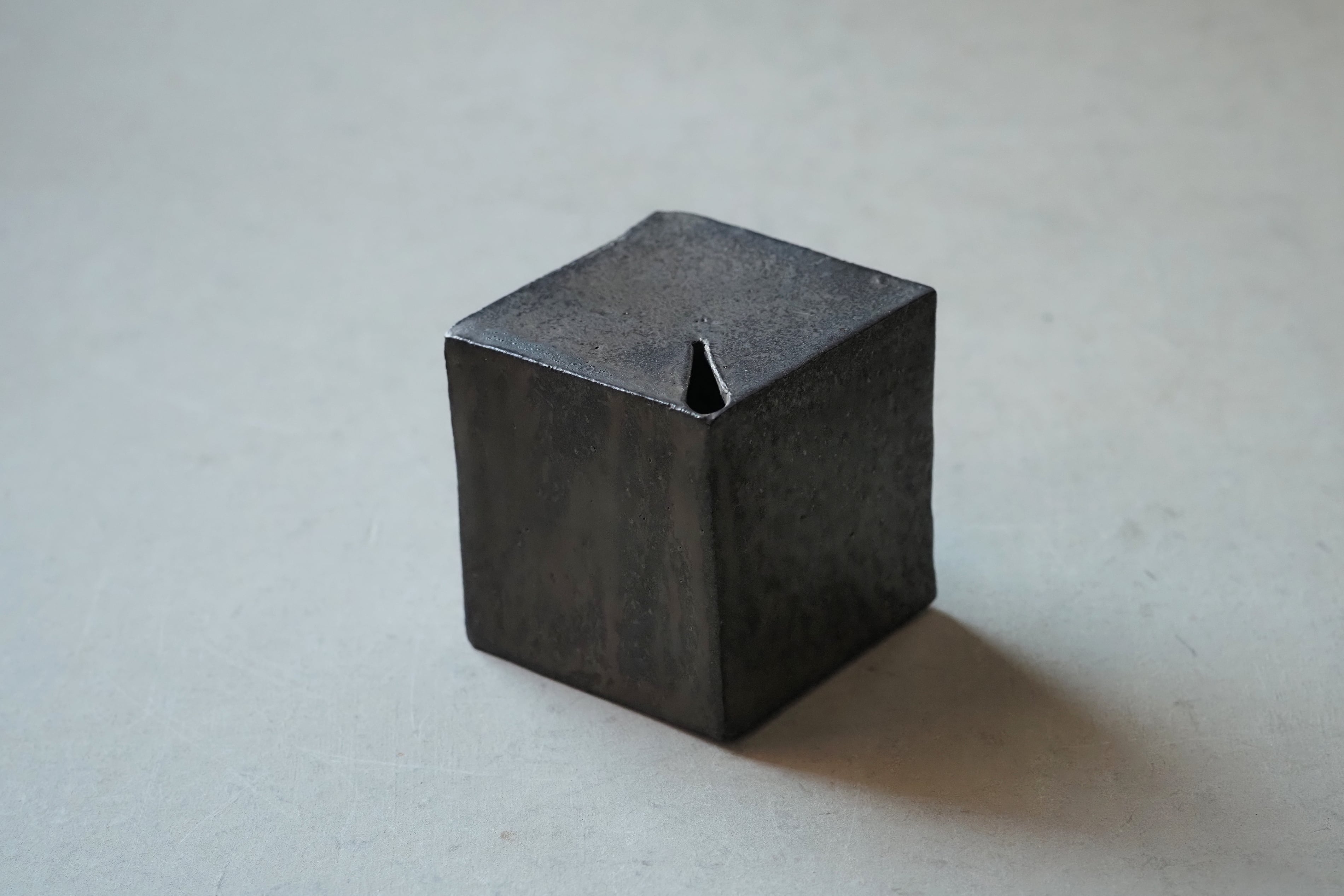 村上 躍 148.マンガン釉キューブ型一輪挿